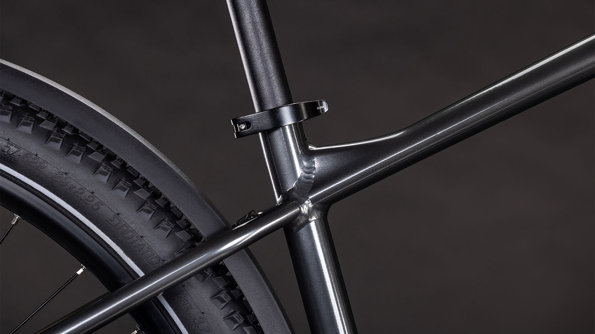 Der Aim SLX FE Rahmen setzt in Sachen Vielseitigkeit neue Maßstäbe: Er kommt mit Schutzblechen, Gepäckträger und Lichtern daher und ist somit direkt startklar für alles, was von ihm verlangt wird. Außerdem hat Cube ein geschraubtes Tretlager verbaut und die Züge ins Innere verlegt. On top gibt’s eine Aufnahme für Flat Mount Scheibenbremsen, die nahtlos in die Seitenständeraufnahme integriert ist. Die spezielle Geometrie hat ein niedrigeres Oberrohr für superzuverlässiges Handling und lässt genug Platz für breite, griffige, komfortable 2.25 Zoll Reifen. Dazu ist das Size Split System breit aufgestellt – so finden alle das für sich und ihre Körpergröße perfekt passende Aim FE.