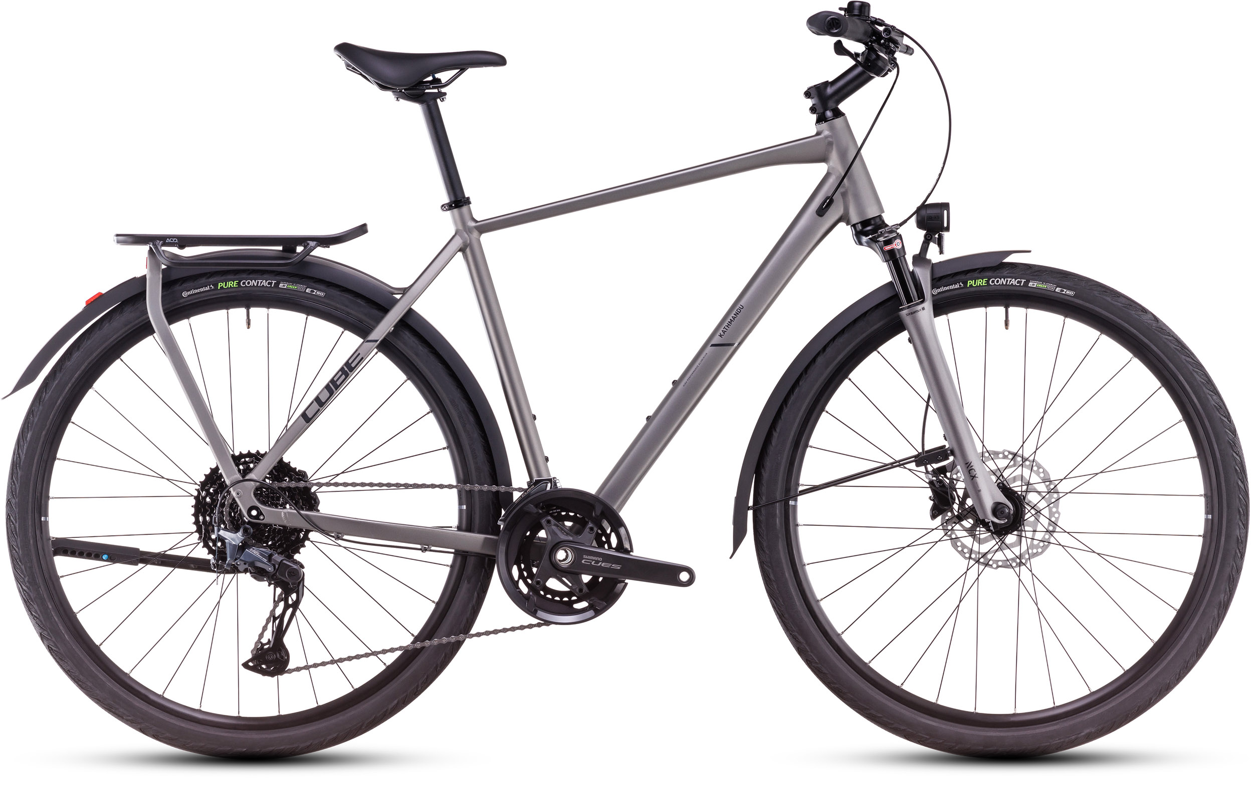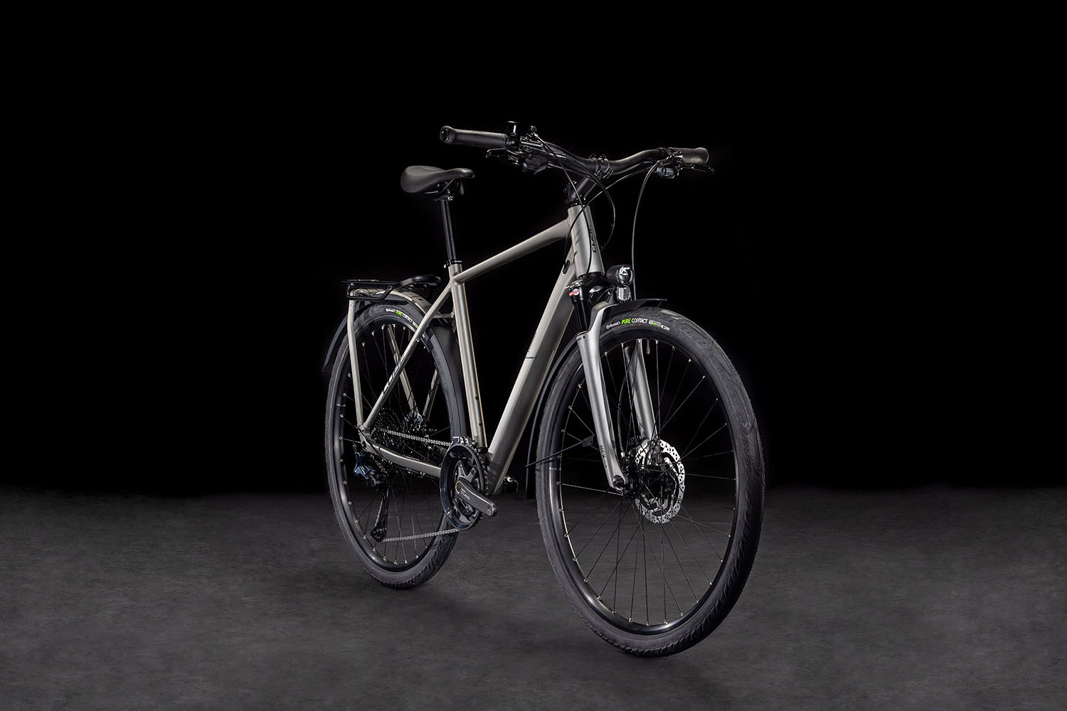 Vom Großstadtdschungel auf abgelegene Bergpässe und wieder zurück – mit dem komfortablen und stylishen Kathmandu EXC kein Problem! Cube hat diesem Weltenbummler nämlich eine Shimano Cues 2×11-Gang Schaltung spendiert, die auf hohe Zuverlässigkeit und einfache Bedienung ausgelegt ist. Ebenfalls von Shimano stammen die leistungsstarken hydraulischen Scheibenbremsen, die ebenso wie die Pure Contact Reifen von Continental aus nachhaltig gewonnenem Kautschuk zu jeder Zeit volle Kontrolle vermitteln. Eine einfach einstellbare Suntour Luftfedergabel fängt sämtliche Unebenheiten vom Untergrund geschmeidig ab. Ebenso mit im Paket: ein integrierter Gepäckträger IC 3.0 und viel weiteres Zubehör, wie Schutzbleche, Seitenständer und Lichter. Das perfekte Set-up für alle Eventualitäten – einfach aufsitzen und ab ins Abenteuer!