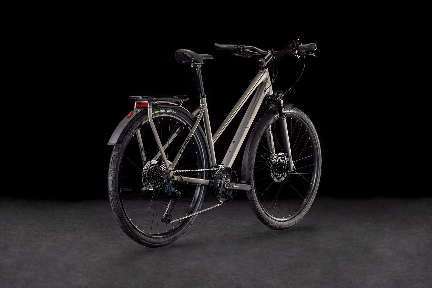 Der Trapezrahmen des Kathmandu – Sinnbild für klassische Eleganz! Dabei geht der integrierte Gepäckträger IC 3.0 nahtlos und formschön in unsere ACID Schutzbleche über. Dazu gibt’s am Hinterrad Aufnahmen für eine Flat Mount Scheibenbremse und einen Seitenständer. Seine cleane, aufgeräumte Optik verdankt das Chassis den im Smooth Welding Verfahren gestalteten Rohrverbindungen. So viel zur Optik. In Sachen Funktion hat Cube den Hinterbau mit einer Steckachse versehen und sich für ein konifiziertes Steuerrohr für optimierte Stabilität und Lenkpräzision (selbst bei voller Beladung) entschieden. Last, but not least wechselt die Schaltung dank im Unterrohr verlaufenden Zügen dauerhaft geschmeidig von Gang zu Gang und muss kaum gewartet werden. Alles da, was es braucht – nur die Zahnbürste, die musst du selbst einpacken!
