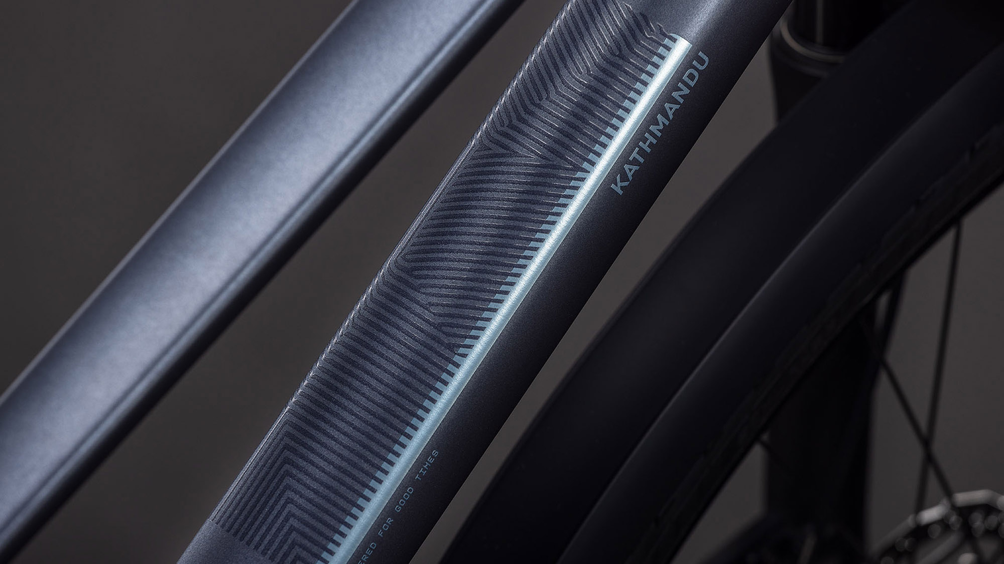 CUBE sind unter anderem für ihre extreme Liebe zum Detail bekannt. Deshalb haben sie das Kathmandu auch mit dem integrierten Gepäckträger IC 3.0 ausgestattet, der nahtlos und formschön in die ACID Schutzbleche übergeht. Dazu gibt’s am Hinterrad Aufnahmen für eine Flat Mount Scheibenbremse und einen Seitenständer. Seine cleane, aufgeräumte Optik verdankt das Chassis den im Smooth Welding Verfahren gestalteten Rohrverbindungen und im Inneren verlaufenden Zügen. So viel zum Aussehen. In Sachen Funktion wurde der Hinterbau mit einer Steckachse versehen und ein konisches Steuerrohr für optimierte Stabilität und Lenkpräzision (selbst bei voller Beladung) verbaut. Also alles da, was es auf Tour braucht – den Rest machst du!