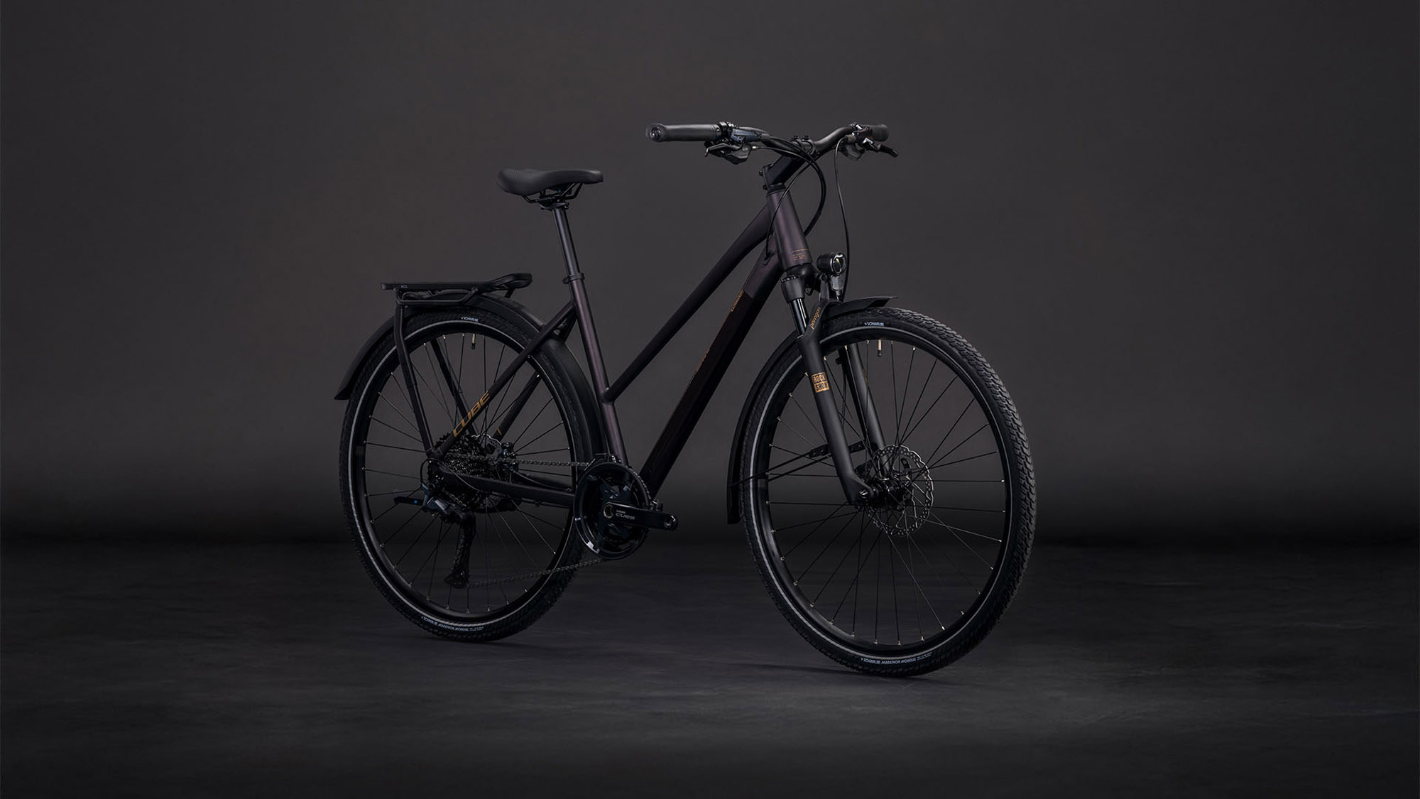 Der Trapezrahmen des Kathmandu aus dem Hause CUBE ist ein Sinnbild für klassische Eleganz! Der integrierte Gepäckträger IC 3.0 geht nahtlos und formschön in unsere ACID Schutzbleche über. Dazu gibt’s am Hinterrad Aufnahmen für eine Flat Mount Scheibenbremse und einen Seitenständer. Seine cleane, aufgeräumte Optik verdankt das Chassis den im Smooth Welding Verfahren gestalteten Rohrverbindungen und im Unterrohr verlaufenden Zügen. So viel zum Aussehen. In Sachen Funktion wurde der Hinterbau mit einer Steckachse versehen und ein konisches Steuerrohr für optimierte Stabilität und Lenkpräzision (selbst bei voller Beladung) verbaut. Also alles da, was es auf Tour braucht – den Rest machst du!