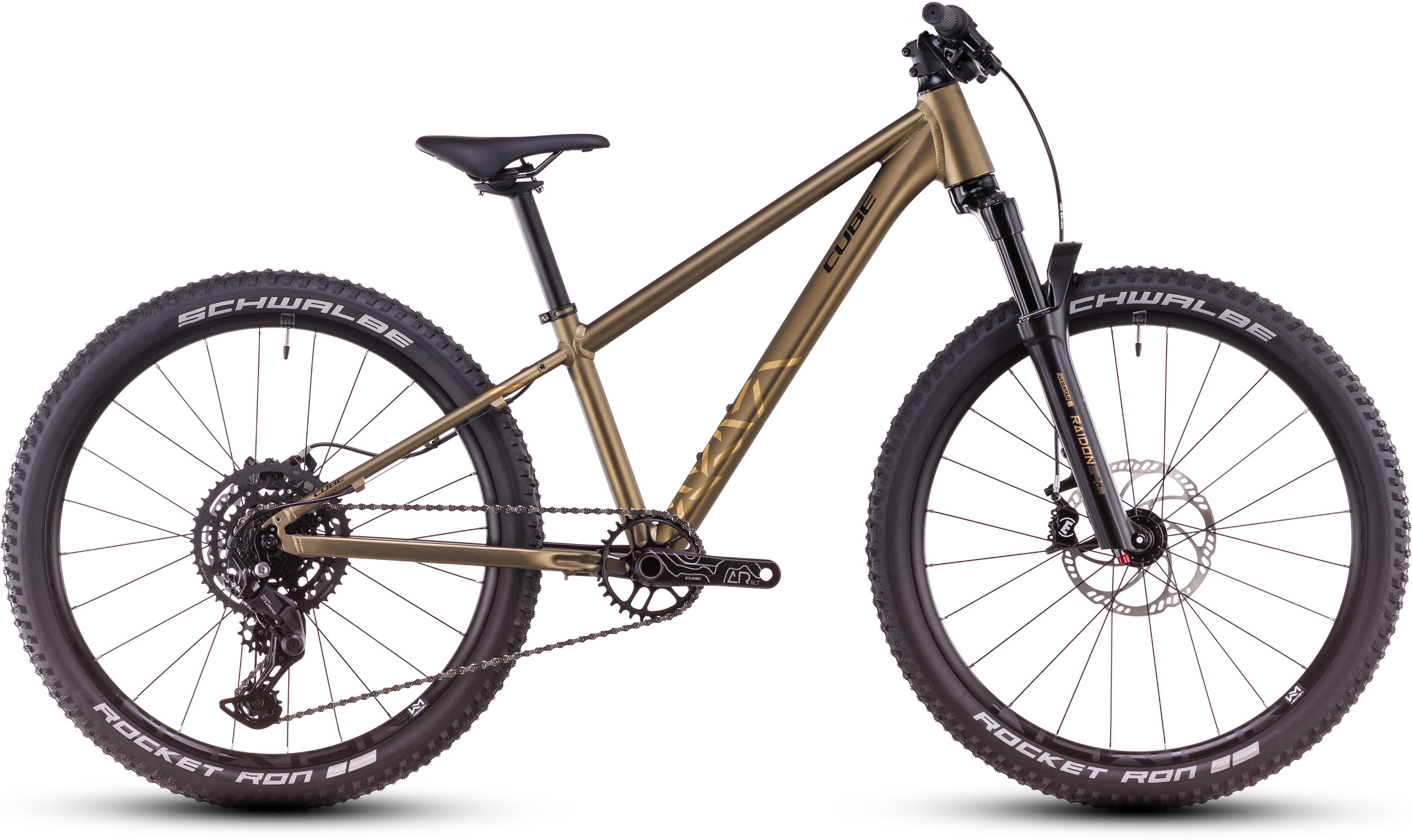 Der Reaction 240 TM Rahmen besteht aus denselben hitzebehandelten 6061er-Aluminiumrohrsätzen wie die Performance-Bikes für Erwachsene – Cube hat ihre Form für das optimale Verhältnis von Steifigkeit zu Gewicht sogar mit demselben mechanischen Shaping-Verfahren angepasst und: genügend Reifenfreiheit integriert. Eine Federgabel, die speziell auf das kleinere Chassis und leichtere Rider abgestimmt wurde, setzt dem Ganzen die Krone auf. Zudem sorgen Aufnahmen für Scheibenbremsen und die clevere Positionierung der Kabelzüge für noch höhere Sicherheit und bessere Bremsleistung. Ein weiteres Highlight ist das austauschbare Schaltauge, dank dem nach einem kleinen Sturz nicht gleich der ganze Rahmen kostspielig repariert werden muss.
