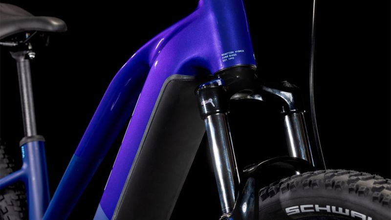 Der Reaction Hybrid Rahmen sieht vielleicht unspektakulär aus, steckt aber voller cleverer Features. Sein 600 Wh PowerTube Akku und der Bosch CX Motor sind so formschön, sauber und sicher ins schlanke, elegante Design integriert, dass sie kaum auffallen. Außerdem ist das Chassis PowerMore-ready, das heißt, es können bei Bedarf weitere 250 Wh mitfahren. Dazu betonen die integrierte Sattelklemmung und die interne Zugverlegung die cleane Optik. Was noch? Ein UDH für einfache Ersatzteilverfügbarkeit, eine Aufnahme für die Kettenführung und die Möglichkeit, ACID Schutzbleche nachzurüsten. Last, but not least hat Cube dank des Size Split System für so gut wie jeden Fahrer die perfekte Passform im Angebot. Fazit: Alles da, was wichtig ist – für maximalen Fahrspaß!