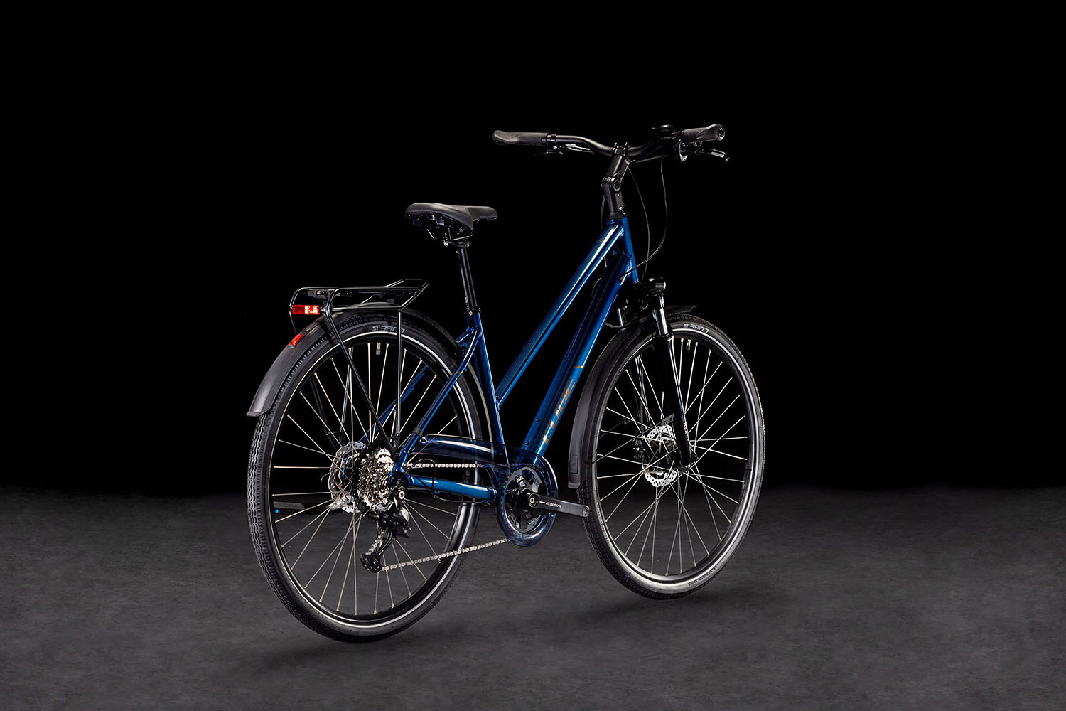 Horizonterweiterung gefällig? Mit dem voll ausgestatteten und superkomfortablen Cube Touring ONE geht’s geschmeidig dahin – egal ob in der Stadt oder über Land! Dabei liefert die einfach zu bedienende 3×8-fach Essa Schaltung von Shimano top Support auf allen Routen und Anstiegen. Leistungsstarke hydraulische Scheibenbremsen packen vor allem bei Nässe um einiges kraftvoller zu als normale Bremsen und verzögern das Bike somit viel sicherer. Dazu kommen eine Federgabel und 47 mm breite Reifen für sensationellen Fahrkomfort auf holprigen Strecken. Praktisch für alle, die viel in der City unterwegs sind: Schutzbleche, der formschön integrierte Gepäckträger, die Dynamo-gespeiste Lichtanlage und der praktische Seitenständer.