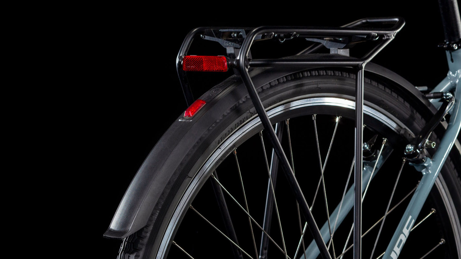 Das Herzstück des Town ist sein hochwertiger, leichter Aluminiumrahmen mit unserer Efficient Comfort Geometry und damit einem unglaublich agilen und sicheren Handling. Er lässt sich spielend leicht durch den Stadtverkehr manövrieren und sieht als Tiefeinsteiger nicht nur elegant aus, sondern erleichtert das Auf- und Absteigen maßgeblich. Das Town kommt ab Werk mit unserem überaus formschön integrierten Gepäckträger auf die Straße. Außerdem verlaufen die Kabelzüge im Unterrohr, was für einen cleanen Look und dafür sorgt, dass die Schaltung ihre Arbeit länger sauber machen kann. Selbstverständlich hat Cube an genügend Platz gedacht und an Montagepunkte zum Anbringen eines Flaschenhalters. Da kann die Wochenendtour ruhig mal länger dauern. Aufsitzen und genießen!