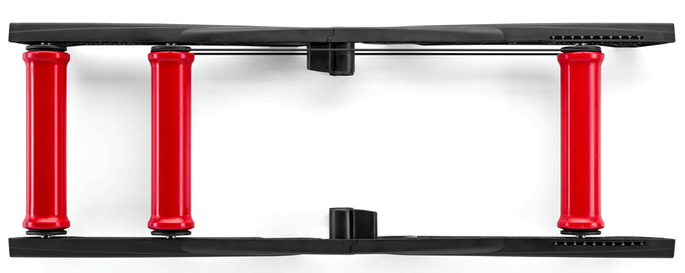 • Einfache Benutzung: Die technischen Eigenschaften der drei Rollen garantieren eine einfache Kontrolle der Fahrt. Die Enden der Rollen führen das Fahrrad mit ihrer typischen Parabolform sofort zurück in die Mitte der Rolle. Außerdem verringert die vollkommen glatte Oberfläche der Rollen den Geräuschpegel und die Abnutzung der Reifen