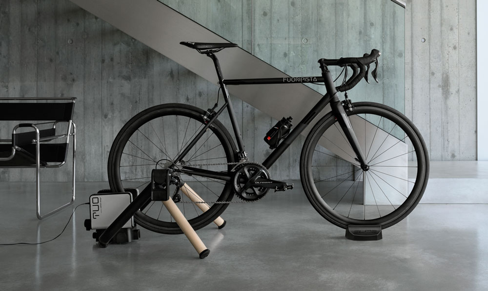 Kompakt, benutzerfreundlich und sehr leise, TUO ist ein komplett interaktiver Wheel-On-Trainer mit automatischer Widerstandsregelung. TUO wurde in Zusammenarbeit mit der Turiner-Werkstatt Adriano Design entwickelt, um ein leistungsstarkes Instrument für das Indoor-Training oder zum Aufwärmen bereitzustellen und gleichzeitig ein Einrichtungsstück mit einem raffinierten Made in Italy-Design zu präsentieren. TUO errechnet die entwickelte Leistung mit einer Genauigkeit von ± 5% und simuliert dabei Steigungen von bis zu 10%. Dieser Hometrainer arbeitet bei der Berechnung der Leistung mit einen neuen Algorithmus, der von Elite in Zusammenarbeit mit dem Fraunhofer-Institut für Technomathematik ITWM in Deutschland entwickelt wurde.