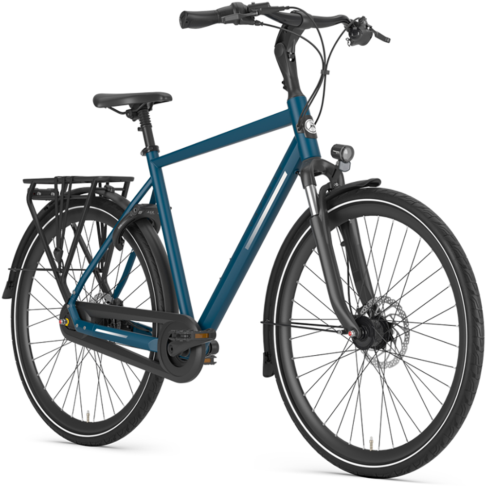 Rahmen: Sporty and lightweight aluminium frame with a 71.5° seat tube angle and a 70.5° head tube angle. The slim frame and integrated cables give the bike a sleek luxury appearance. Rahmenmaterial: Aluminium Laufradgröße: 28″ Anzahl Gänge: 1 x 7 Farbe: ink blue matt Gabel: Aluminum, Telescope, spiral spring, 50mm travel Federweg: 50 mm Bremsen: Shimano BR-MT200, 180 mm / 160 mm Bremsscheiben: Front: 180 mm / Rear: 160 mm Bremshebel: Shimano BLMT200 Vorbau: Gazelle, adjustable, cable integration Lenker: Gazelle Griffe: Ergon GC10, plastic handlebar grips with ergonomic form for a better distribution of pressure on the hands Sattel: Selle Royal Essenza Plus gel Sattelstütze: Gazelle with seat post suspension 27,2 mm Kurbel: Front chainwheel 38T Schalthebel: Shimano Nexus 7, 7-speed Kassette: Shimano 18T Reifen: Schwalbe Road Cruiser, 42-622 Nabe Vorderrad: Shimano hub dynamo (3W) Nabe Hinterrad: Shimano Nexus 7, 7-speed Felgen: Ryde Dutch 19, double-walled aluminium for extra strong and efficient cycling performance Scheinwerfer: Hubdynamo, Trelock Veo 50 lux Rücklicht: Hubdynamo, AXA Blue Line 50 Gepäckträger: MIK HD System Aluminum carrier Sonstiges: Schutzblech, Ständer, Glocke, Axa Defender Lock Zulässiges Gesamtgewicht: 130 kg (Körpergewicht + Fahrrad + Ausrüstung) Gewicht Komplettrad: ab 19.3 kg