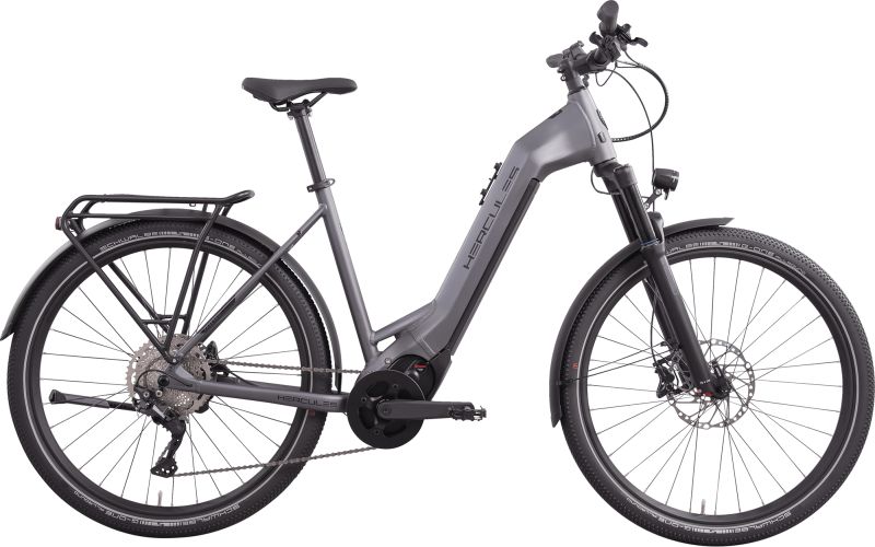 Mit der Kombination aus Komfort, Kraft und Kondition ist das Hercules Pasero SUV I-10 ideal für lange Touren und Radreisen. Dank der Schwalbe G-One Allround Reifen macht der Sport-Tourer auch auf Schotter und Waldwegen eine super Figur. Dabei erzeugen die besonders breite Bereifung und die Suntour Luftfedergabel mit 120 mm Federweg einen Fahrkomfort, den man auch auf Kurzstrecken nicht mehr missen möchte. Formschön integriert, liefert der FIT Antrieb mit dem stärksten Brose-Motor (S-Mag Pro FIT 25/90 Nm) seiner Klasse und besonders leichtem Magnesium-Gehäuse die Kraft, um auch anspruchsvolle Strecken zu meistern. Gepaart mit der Energie des 720 Wh SuperCore Akkus bietet das Pasero SUV I-10 eine herausragende Kombination aus Kraft und Kondition. Abgerundet wird die Ausstattung durch die sportliche Shimano Deore 10-Gang-Schaltung und einer besonders leistungsstarken Shimano Hydraulik-Scheibenbremsanlage.