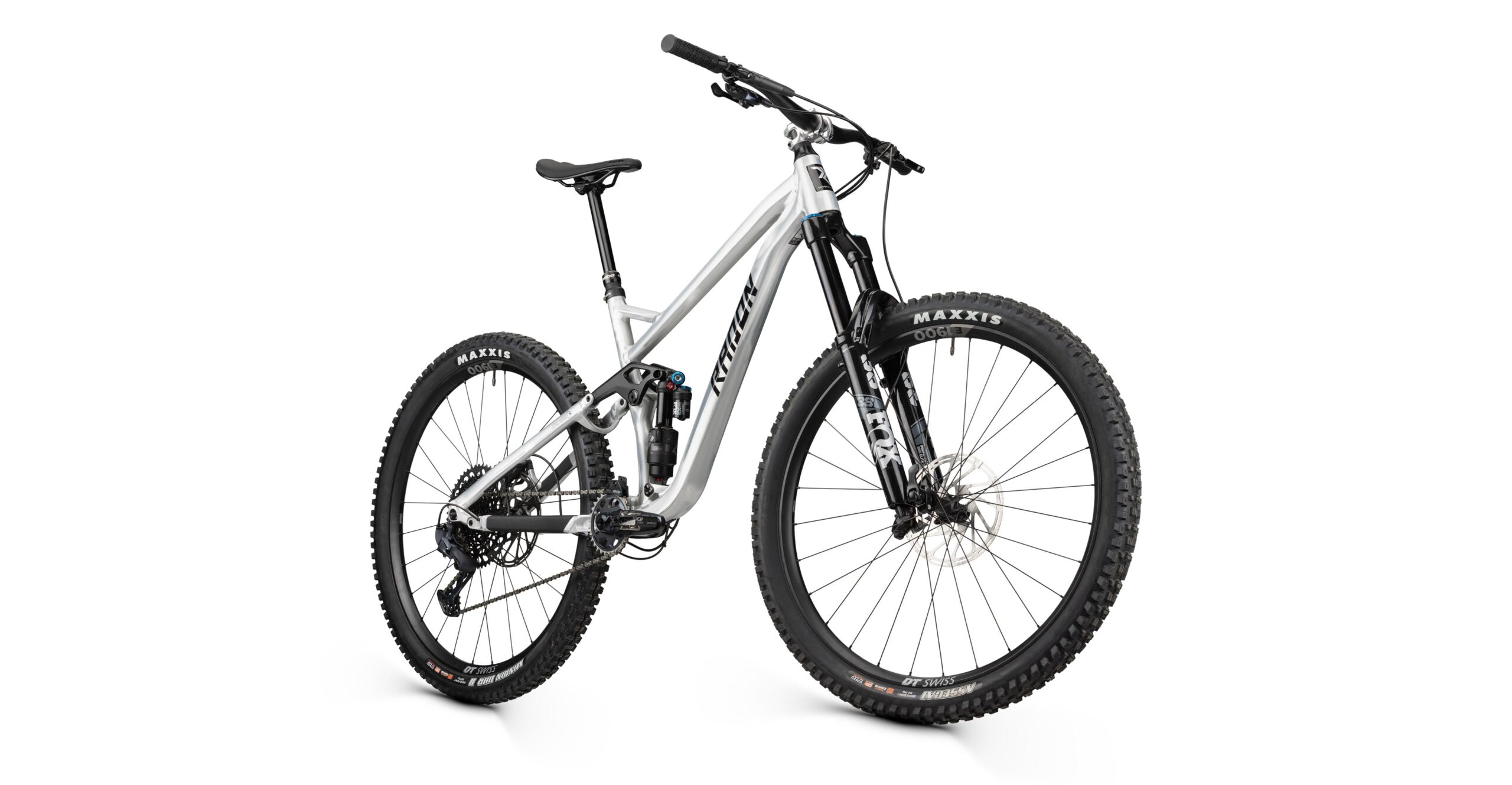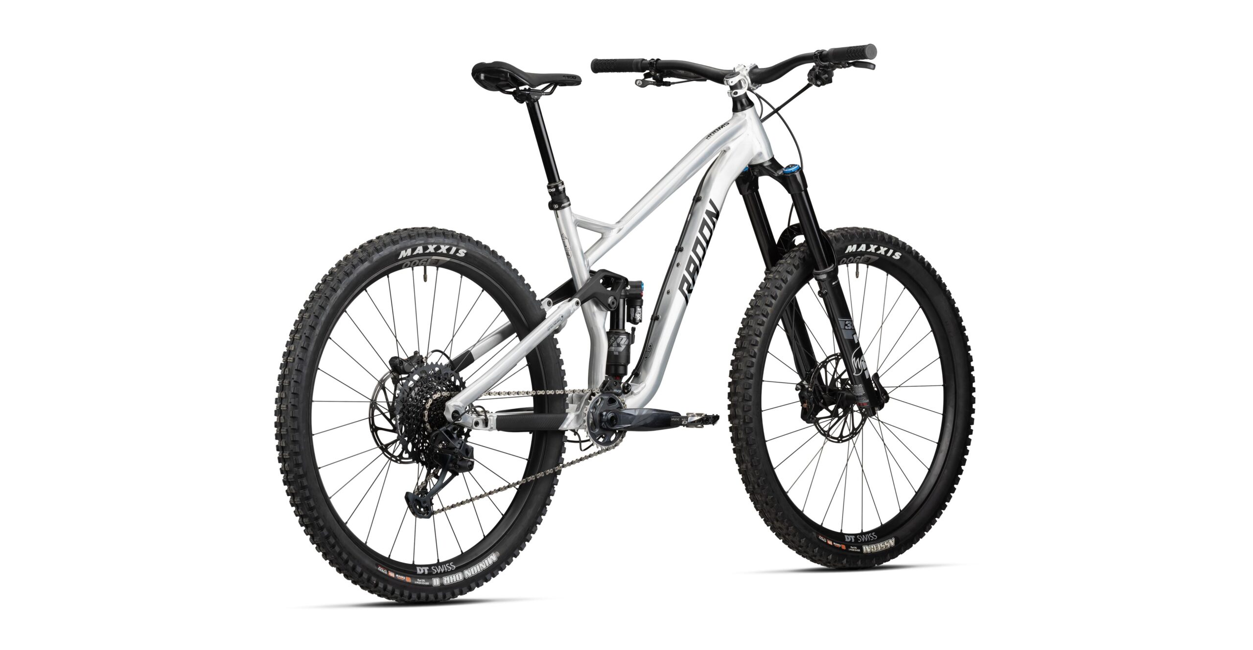 Vorne arbeitet die 38 Performance Elite Gabel mit 170 mm Federweg und der superben FIT GRIP2 Kartusche, die Dir die volle Kontrolle über die Einstellmöglichkeiten von Compression und Rebound bietet. Am Heck verbauen wir den großvolumigen Luftdämpfer Fox X2 Performance Elite mit ebenfalls 170 mm Federweg, der das Fahrwerk komplettiert und für den Uphill per 2-Position-Hebel beruhigt werden kann. Antriebsseitig spezifizieren wir SRAMs GX Eagle 12-fach Gruppe, die zuverlässig und präzise schaltet und mit ihrer sehr großen Bandbreite von 520 % jeden Anstieg zum Kinderspiel macht. Dank der Vorbau-Lenker-Kombination aus der Turbine R Serie von Race Face fühlst Du Dich auf dem Bike sofort zu Hause und hast stets volle Kontrolle auf dem Trail. Der nächste Downhill kann kommen! Um vor der kommenden Anliegerkurve wieder ordentlich zu verzögern, setzen wir auf die überragende SRAM Code R nebst 200 mm großen Bremsscheiben, die nicht nur massig Bremspower hat, sondern sich auch noch fein dosieren lässt. Auf dem unverwüstlichen DT Swiss E1900 Spline Systemlaufradsatz montieren wir vorne Maxxis’ Assegai und hinten den Minion DHR II – beide in griffiger MaxxTerra Mischung und stabiler EXO+ Karkasse. SWOOP AL 9.0 – return of the legend!